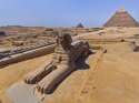Этот монумент выделяется среди других не только размерами, но и тем, что именно рядом с ним находится легендарный Сфинкс — прекрасное каменное изваяние с телом льва и головой человека, возможно, изображающей сам Хефрена.