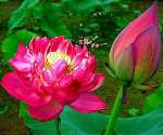Отбирались только более яркие и высокие цветы для массового культивирования. В итоге вырастили очень большой цветок, который достигает 40 сантиметров в диаметре. Обыкновенные цветы лотоса цветут в течение двух месяцев, но этот, названный красным флагом, может цвести с конца мая до начала ноября.